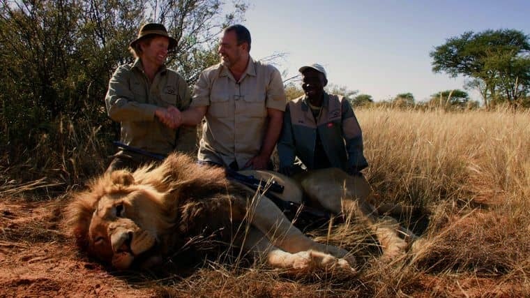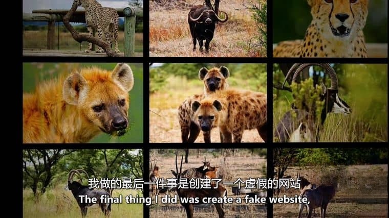 开篇展现主角的“变身过程”:学习使用专业狩猎相机、模仿猎人的“野外追踪术语”、甚至刻意晒黑皮肤以融入环境。她加入一个由国际猎人组成的“狩猎团”,跟随他们深入纳米比亚的私人保护区,表面上为猎人拍摄“狩猎纪念照”,实则用藏在相机包、帽子内的微型摄像机记录对话和猎杀过程。影片记录下关键证据:猎人讨论“如何选择鬃毛茂盛的雄狮以提高‘战利品价值’”,并承认“每年猎杀的狮子中,60%是受保护的成年个体”。