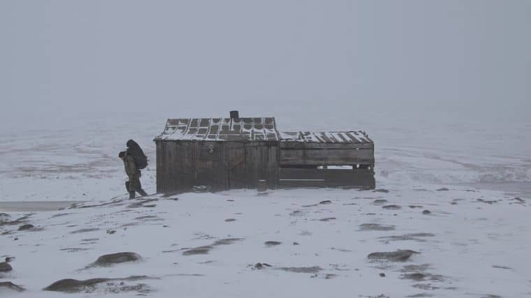 影片以查基列夫的视角展开:他在小屋窗口用望远镜记录海象登陆,起初是零星个体,一周后海滩被完全覆盖,海象甚至爬上小屋台阶。当他试图出门,被密集的海象群阻挡,只能爬上屋顶——俯拍镜头中,人类与庞大的海象群相比如同“孤岛”,查基列夫的剪影在夕阳下显得渺小而孤独。这种“被包围”的视觉冲击,直观展现“人类在自然力量面前的无力”,也隐喻“气候变化的反噬已无法回避”。