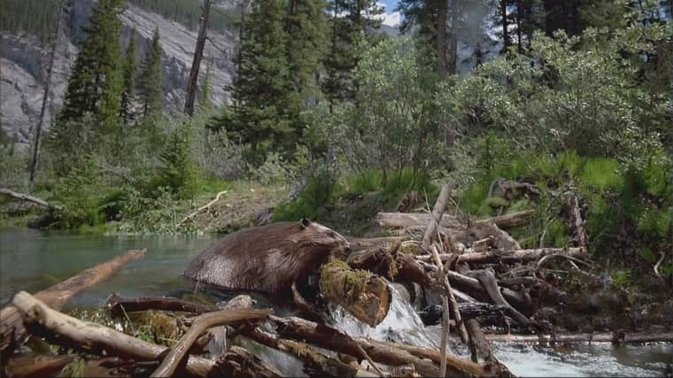 生态影响:水坝形成的人工湖成为“鱼类产卵场”和“水鸟栖息地”,影片拍到湖中有虹鳟鱼、野鸭、麝鼠等10余种生物,印证“海狸是‘生态系统工程师’”——它们改造环境的行为,能让一片森林变成“湿地乐园”。