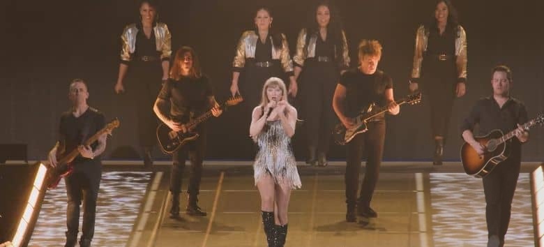 作为迪士尼出品的作品,影片在视觉呈现上极具水准,完美复刻了这场“堪比百老汇音乐剧”的宏大演出[5]。导演格伦·韦斯以细腻而有张力的镜头语言,搭配高清拍摄技术,捕捉舞台上的每一个细节:泰勒多变的造型与极具感染力的舞台表现、乐手与舞者的默契配合、灯光与舞美的完美融合,以及现场数万粉丝挥舞荧光棒、齐声大合唱的狂热氛围,让屏幕前的观众仿佛身临其境,真切感受这场音乐盛典的极致魅力。同时,影片还通过多机位切换,既呈现全场的宏大场面,也聚焦泰勒的细微表情与情感流露,让观众看到舞台之外更真实的她。
