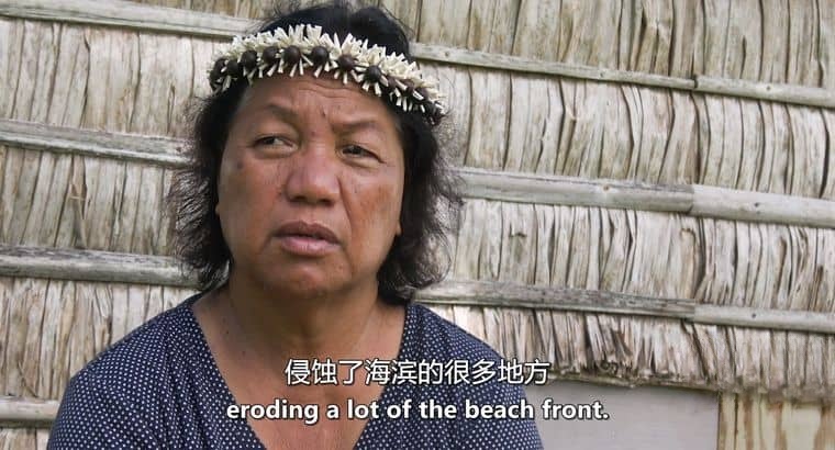 影片开篇,镜头跟随马绍尔群岛居民的脚步,踏上这片被蔚蓝海洋环抱的土地。这里的岛屿由珊瑚礁构成,地势低平,平均海拔不足两米,是全球受海平面上升影响最严重的地区之一。涨潮时,海水不断侵蚀着海岸线,原本的沙滩逐渐消失,咸水倒灌进农田,让世代种植的农作物枯萎死亡。