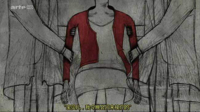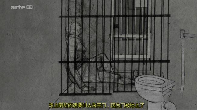 纪录片的开篇,没有华丽的镜头语言,只有简洁粗犷的黑色线条在白色背景上勾勒出的监狱轮廓 —— 高耸的围墙、冰冷的铁窗、拥挤的牢房,每一笔都透着压抑与绝望。画外音中,比吉特的声音带着岁月的沧桑,缓缓讲述起豪恩奈克女子监狱的日常:“牢房里挤得像沙丁鱼罐头,几个人共用一张狭小的床铺,连转身都很困难。” 等级森严的管理制度更让囚犯们苦不堪言,狱警的呵斥声、囚犯间的紧张关系,时刻笼罩着整个监狱。而比吉特与加布里埃莱记忆中最难以忍受的,并非恶劣的生活条件,而是无休止的强制劳动。动画中,无数纤细的线条勾勒出囚犯们弯腰劳作的身影,她们日复一日地组装零件、加工产品,双手布满伤痕,眼神空洞麻木,画外音里加布里埃莱的声音带着压抑的愤怒:“我们像机器一样运转,没有休息,没有报酬,稍微慢一点就会遭到惩罚。”