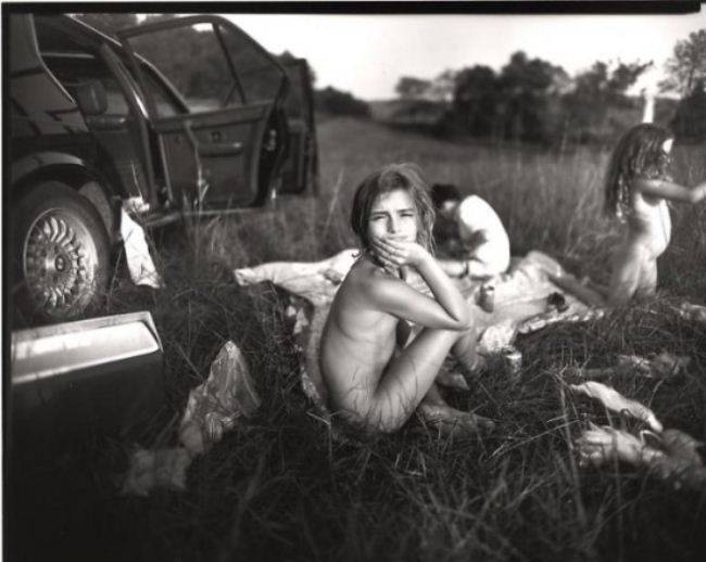 镜头首先聚焦莎莉曼的创作过程,记录她如何以家人为对象,捕捉亲情中最真实、最细腻的瞬间。在弗吉尼亚州的乡村别墅里,莎莉曼的三个孩子在庭院中奔跑、在林间嬉戏、在河边休憩,她则手持相机,安静地跟在一旁,等待最佳拍摄时机。与传统商业摄影不同,她的拍摄没有刻意的摆拍,没有华丽的布景,只有孩子最自然的状态 —— 或许是阳光下赤裸的身体,或许是哭泣时的泪痕,或许是发呆时的懵懂眼神。