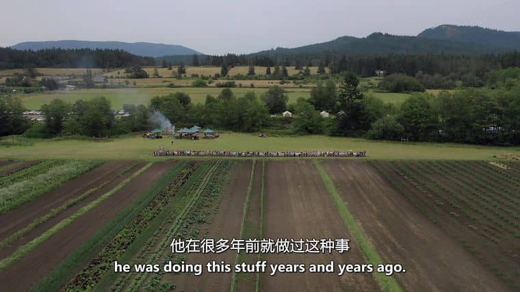 除了土地艺术,吉姆・德尼文另一个开创性的成就,便是创立 “田野中的杰出人物” 项目,而这也成为纪录片浓墨重彩的篇章。不同于传统餐饮模式中 “把食物带到餐厅”,他选择 “把餐厅带到食物上”—— 在食材的原产地,搭建起临时的餐桌,邀请食客与农夫、厨师一同分享美食。纪录片用大量镜头记录了一场田野晚宴的筹备全过程:从清晨,吉姆与农夫一同采摘新鲜的蔬菜、捕捞刚出水的海鲜,确保每一份食材都带着最原始的鲜味;到午后,团队在田野间搭建长桌、布置餐具,白色的桌布在绿树掩映中舒展,阳光透过树叶洒在餐具上,折射出温暖的光泽;再到傍晚,食客们陆续到来,他们或与农夫交流食材的种植故事,或欣赏周围的自然美景,在轻松愉悦的氛围中等待美食上桌。
