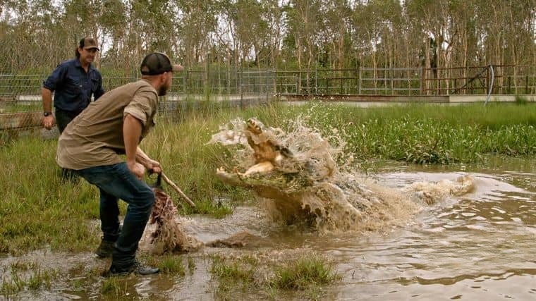 在北领地炽白的烈日下,红土像被烤裂的铁板,空气里浮动着桉树与血腥味的混合气息。直升机旋翼的轰鸣划破寂静,马特·莱特探出舱门,目光如鹰隼般锁定下方浑浊的河道——一条五米长的河口鳄正潜伏在睡莲的阴影里,背脊像一截被水磨亮的礁石。这里是澳大利亚最后的蛮荒心脏,也是《野鳄之境》第一季十集故事的起点:人与史前巨兽的博弈,每一次呼吸都可能成为遗言。