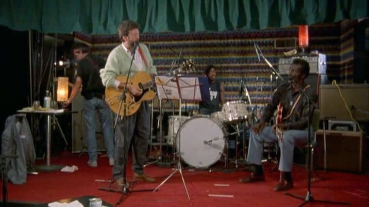 影片以 “人生阶段与音乐成长” 双线并行,完整呈现克莱普顿的生命故事与音乐脉络。在 “人生维度” 上,纪录片不回避他经历的多重创伤与困境:童年时期,母亲的离开让他由祖父母抚养,这段被遗弃的记忆成为他内心深处难以磨灭的隐痛;成年后,对挚友乔治・哈里森妻子帕蒂・博伊德的迷恋,让他陷入情感的道德困境;此后,毒品与酒精成瘾更将他拖入自我毁灭的深渊;而 4 岁儿子康纳的意外离世,更是给了他毁灭性的打击,让他一度迷失人生方向。这些悲剧并非以猎奇方式呈现,而是通过克莱普顿本人的回忆、亲友的讲述以及当时的影像资料,被真实、克制地还原,让观众感受到他作为 “人” 的脆弱与无助。