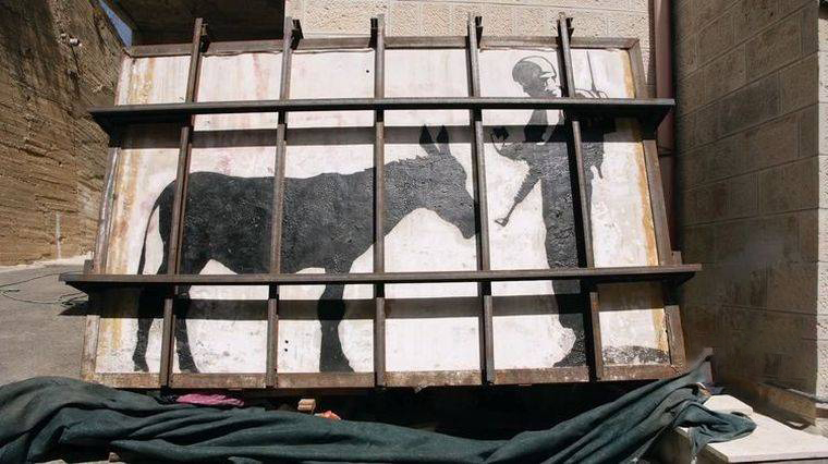 纪录片详细揭露了《驴子的文书》拍卖的全过程。在中东街头,班克斯创作的以色列士兵检查驴子身份证的涂鸦成为名噪一时的名作。一个巴勒斯坦出租车司机想要把这幅涂鸦连同这面墙一起运到西方卖钱,这一行为不仅是简单的买卖,也为班克斯的艺术增加了新的意义。在拍卖过程中,可能涉及到各种利益关系和复杂的操作,如拍卖商的炒作、买家的竞争等。这些秘辛让观众看到了艺术市场背后不为人知的一面。