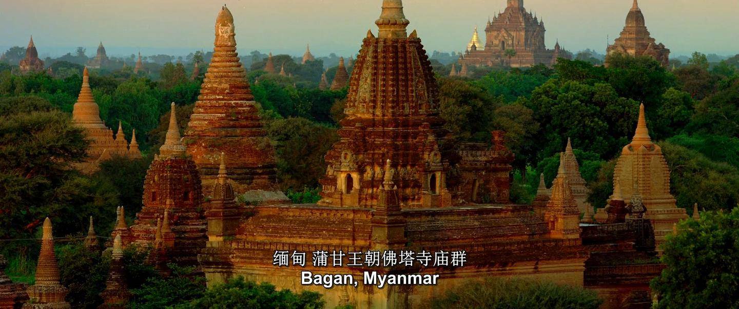 在 104 分钟的时长里,影片带着观众游历了 25 个国家,历史悠久的亚洲大陆在其中占据了很大比重。塔庙林立的蒲甘,华丽庄严的教堂,展现了人类千百年来对神性乃至觉悟的向往。斗转星移,物我两忘,风水雨火肆意涂抹着大地的容貌,所谓崇高的生命在自然的心中不著痕迹,蕞尔不及碎遍三千大千世界后的一抹微尘。只是,颠倒众生,刹那视若永恒,朝夕奔忙,不曾停歇,以污泥、刀锋涂改着各自的容颜。人类自诩万物之主,左右你我他的生命,从天上到地下,从高山到深洋,征服了如梦如幻的器世界,用光怪陆离的玩具将其装点,终不免在永业的轮回中败下阵来。一切无常,正如华美庄严的坛城,轻轻拂拭,还为尘沙……