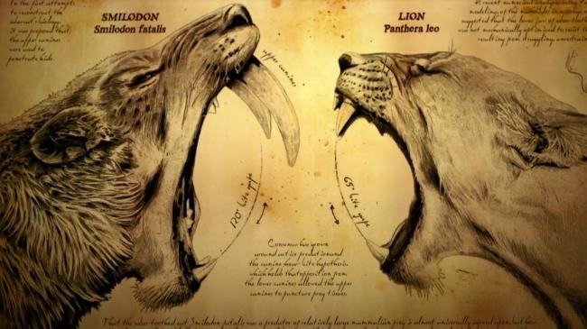 在“剑齿虎之地”这一章节中,我们走进了古生物的世界。古生物是生存在地球历史地质年代中,现已大部分绝灭的生物。刃齿虎,旧译名美洲剑齿虎,它是上新世晚期巨颏虎进入美洲后演化出的新类型。人们普遍认为,第三纪是剑齿动物的鼎盛时期,但到了第四纪的更新世,各种现生的猫科和犬科动物纷纷登场。而仅存的剑齿虎家族在更新世发展到了顶峰,其中包括锯齿虎和异刃虎等优秀成员。它们在那个时代的生态系统中扮演着重要的角色,凭借着强大的捕猎能力,成为了冰河时期的顶级掠食者。