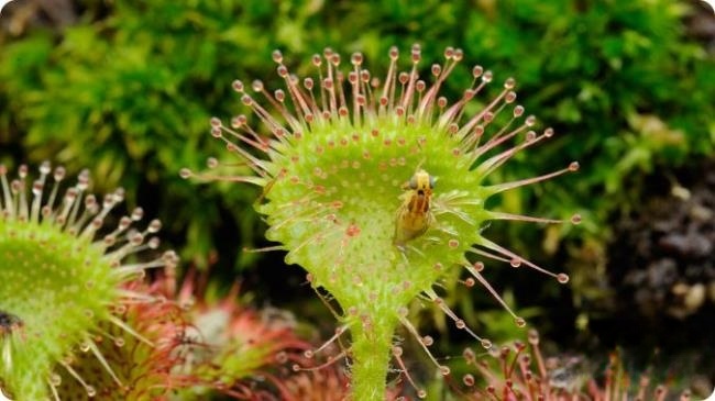 植物的生长离不开阳光、水以及从土壤中获得的矿物质和营养物。然而,在世界的某些地方,如沼泽和泥潭,土壤中的矿物质和营养物极为匮乏。于是,植物展现出了它们的智慧和生存策略,开始从动物尸体中获取所需物质。以茅膏菜为例,它看似静止不动,实则暗藏玄机。它的腺毛可以捕捉昆虫,每根腺毛顶部挂着的晶莹“露珠”,其实是类似胶水的物质,不仅能快速黏住昆虫,还会堵住昆虫身体上的小孔,使其无法呼吸。这一奇妙的现象让我们对植物的生存方式有了全新的认识。