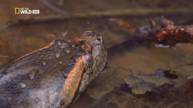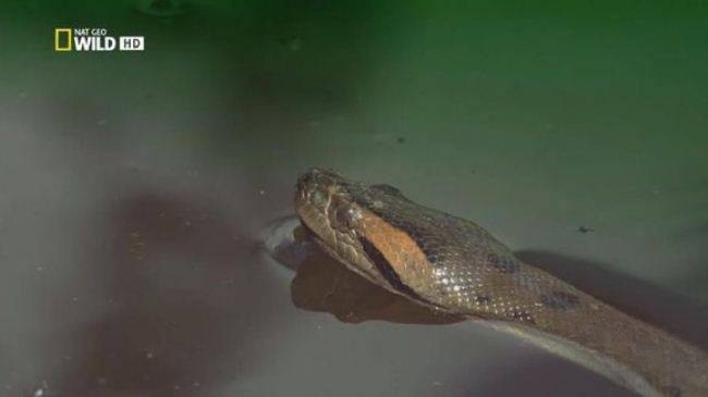 森蚺的“水性”同样惊人。在水下镜头中,它的身体如黑色绸缎般灵活游动,鼻孔可闭合防止进水,眼睛和鼻孔位于头顶,便于潜伏时观察水面动静。当凯门鳄试图偷袭击幼蚺,成年森蚺会将身体沉入水底,突然从鳄鱼下方缠绕其腹部,利用水压和力量使其窒息。这种“以柔克刚”的战术,让森蚺成为沼泽中无可争议的顶级掠食者——没有天敌,唯有同类竞争和自然环境能威胁它们的生存。