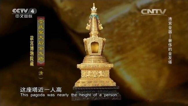 第一集《奢侈的金发塔》拉开了这场金器盛宴的序幕。在一场名为《金碧辉煌》的金器展览中,故宫的 200 多件金器首次齐聚一堂,而其中最引人注目的便是奢华的金发塔。黄金因其耀眼的光泽与珍贵属性,历来备受青睐,而这件金发塔更是集皇家工艺之大成。它由纯金打造,造型精巧,工艺繁复,运用了铸造、锤鍱、錾刻、累丝等多种高超技艺,塔身上还镶嵌着各类珍贵宝石,熠熠生辉。这座金发塔是乾隆皇帝为纪念母亲孝圣宪皇后而特意下令制作的。乾隆皇帝对母亲极为孝顺,母亲去世后,他为了表达哀思,命工匠耗费大量黄金与心血打造此塔,用以盛放母亲生前梳落的头发,寄托无尽的思念。金发塔不仅是一件精美的工艺品,更承载着深厚的皇家孝道,从侧面反映出乾隆时期国力的强盛与宫廷对孝道文化的尊崇。