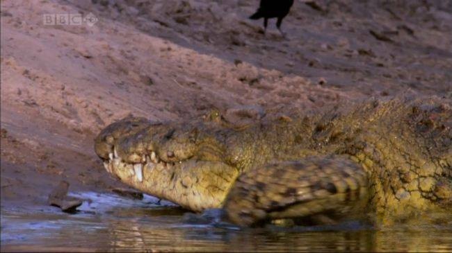 为近距离记录迁徙中的珍贵瞬间,BBC摄制组采用“间谍伪装术”——将摄像机藏在遥控乌龟、鳄鱼、蜻蜓体内,或伪装成沿途的石头、动物头骨,以“不打扰”的方式捕捉到前所未有的罕见画面:角马群横渡马拉河时,鳄鱼从水中突袭的“天堂之渡”;小角马出生后10分钟内站立奔跑,跟随母亲穿越草原;领头角马通过“前后照应”和“警觉观察”保护群体安全,展现食草动物在生存压力下的智慧与协作。