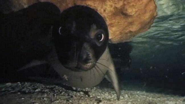 第二集聚焦珍稀物种的生存困境,以地中海僧海豹和亚马逊海牛为案例,展现“脆弱海洋生态系统”的现状。地中海僧海豹全球仅存约700头,纪录片团队在希腊克里特岛的隐秘洞穴中,拍到了母海豹哺育幼崽的画面:洞穴入口被海浪淹没,幼崽必须在黑暗中学会屏住呼吸,跟随母亲穿越狭窄的水道。然而,渔民的渔网和游客的惊扰,让这一最后的栖息地岌岌可危——片中记录了一头幼崽因误食塑料垃圾窒息死亡的场景,科研人员解剖时发现其胃中竟有5公斤塑料袋,令人痛心。