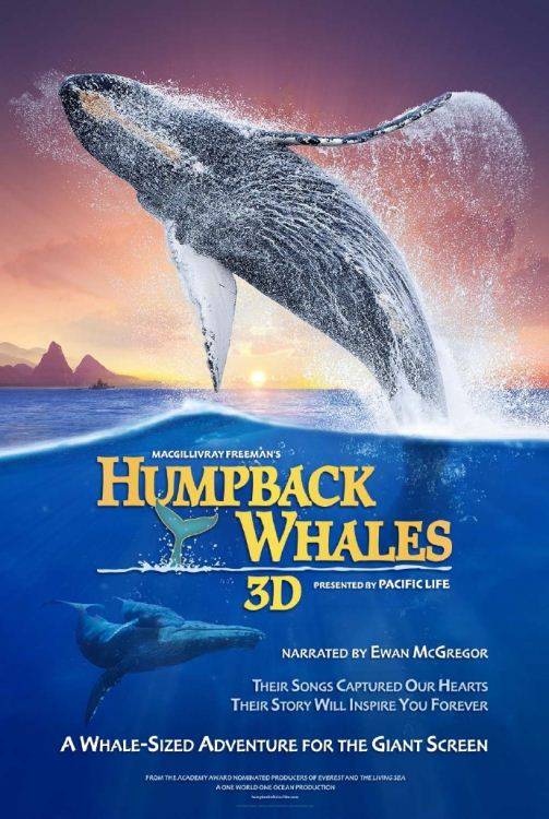 美国纪录片《座头鲸》(Humpback Whales,2015)由伊万·麦克格雷格旁白,以40分钟的电影形式,聚焦座头鲸的生存智慧与保护议题,通过震撼画面解析其鸣歌声、生活习性、交配及觅食行为,同时揭示猎鲸活动导致数量锐减的危机,倡导海洋保护。