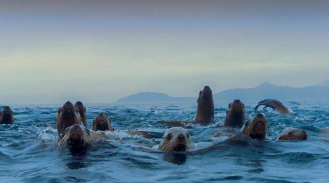伟大的鸣歌声:雄性座头鲸的歌声长达20分钟,包含重复乐句与主题变奏,群体内所有雄性会逐渐同步“更新曲目”,如同“海洋流行乐”。影片通过水下录音捕捉其复杂声谱,科学家推测歌声既是求偶信号,也是群体间的“社交语言”,传播距离可达30公里。