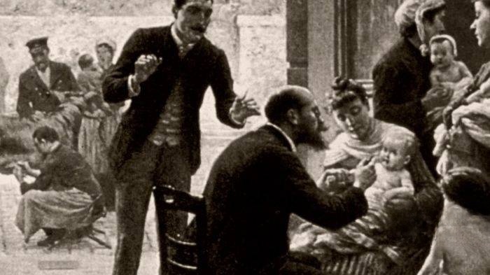19 世纪末的医学水平,对天花的治疗几乎 “束手无策”:当时没有抗病毒药物,医生能采取的措施仅有 “隔离、退烧、皮肤护理”,但这些手段对重症患者几乎无效 —— 天花病毒的致死率高达 30%,幸存者也常因皮肤溃烂留下永久性疤痕,甚至失明。纪录片中,通过重现当时的医院场景:医生穿着厚重的棉布防护服(无防护面罩、手套),用剪刀剪开患者的皮疹水疱,涂抹硫磺软膏,却因缺乏无菌操作,导致继发感染率大幅上升;而医院的床位不足,许多患者只能躺在走廊的草席上,互相交叉感染。同时,疫苗的 “局限性” 也加剧了困境 —— 当时的天花疫苗需从牛痘中提取,产量极低且储存条件苛刻(需冷藏),无法满足大规模接种需求;更有部分民众因 “疫苗会导致牛痘感染” 的谣言,拒绝接种,进一步削弱了防疫效果。