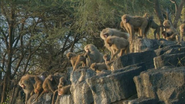 捕食威胁:狒狒惧怕蛇和狮子,一次狮群突袭中,Mat与狒狒一同爬上树躲避,目睹幼崽被叼走的悲剧,也见证了母狒狒因丧子而抑郁的“哀伤行为”(食欲减退、脱离群体)。