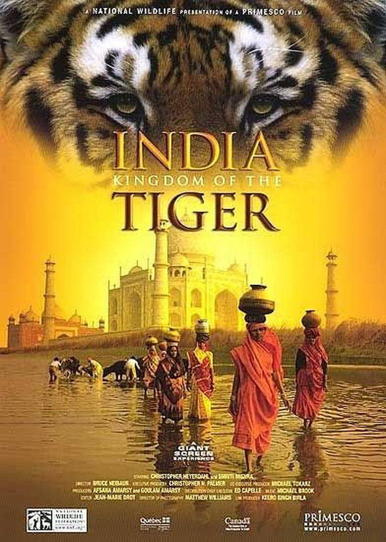 2002年,IMAX纪录片《印度:老虎王国》(India: Kingdom of the Tiger)以70毫米胶片的震撼画幅,将观众带入印度次大陆的自然秘境。影片受野生动物保护先驱吉姆·科贝特(Jim Corbett)的文章启发,追随他的足迹穿越喜马拉雅山麓至印度洋沿岸,用特写镜头捕捉孟加拉虎的威严——从雄虎巡视领地时的低吼,到母虎教幼崽捕猎的温情,再到它们在雨林中隐现的金色皮毛。IMAX技术让每一根虎须、每一次肌肉震颤都清晰可见,仿佛与这“森林之王”面对面呼吸。但影片不止于视觉奇观,更通过科贝特的保护理念,揭示印度如何在文化信仰与生态危机中,为老虎保留最后的“王国”。