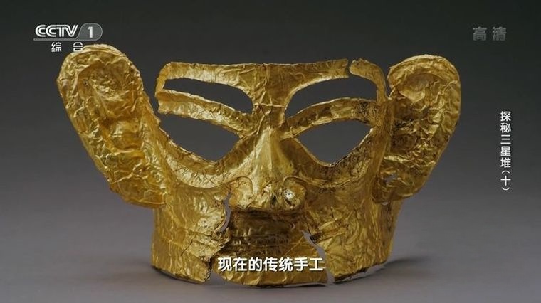 金面具残片、金箔饰件的出土,揭示了三星堆文明对黄金的崇拜。纪录片记录了金面具残片的提取过程:考古人员用特制的软毛刷轻轻清理表面泥土,再用薄塑料片小心将其从泥土中分离,最终拼接出的金面具残片虽不完整,但仍能看出其面部轮廓的夸张造型 —— 宽额、高鼻、大耳,与青铜面具的风格一脉相承。专家推测,黄金面具可能是古蜀国王或巫师在祭祀活动中佩戴的礼器,象征着 “沟通天地、连接人神” 的权力,而大量黄金的使用,也从侧面反映出三星堆文明可能拥有发达的黄金开采与加工产业,以及与周边地区的贸易往来。