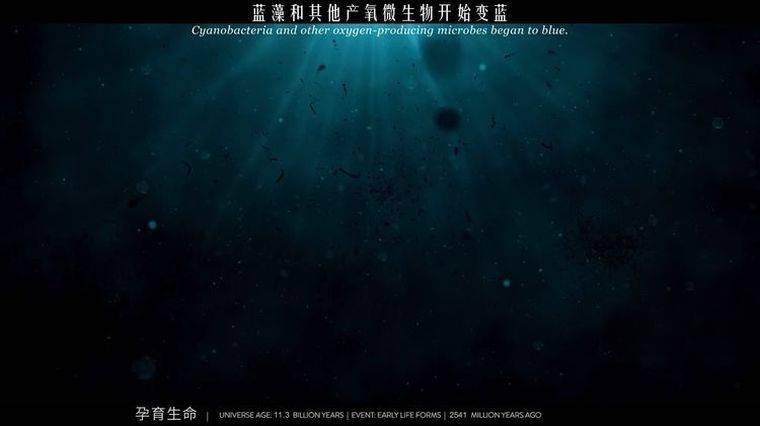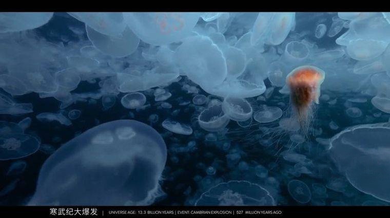 地球诞生后,短片用约 5 秒的时间(对应实际约 11 亿年)呈现 “生命从无到有” 的过程:约 35 亿年前,海洋中出现单细胞生命(如蓝藻);约 5.4 亿年前,寒武纪生命大爆发,出现三叶虫、奇虾等复杂生物;约 3.6 亿年前,生物登陆,逐渐演化出爬行动物、恐龙、哺乳动物。画面中,海洋从 “单一绿色” 逐渐变得 “五彩斑斓”(多细胞生物出现),陆地从 “荒芜” 逐渐覆盖植被,恐龙在陆地上繁盛后又因小行星撞击灭绝,哺乳动物趁机崛起。最终,在短片的最后 0.1 秒(对应实际约 20 万年),智人(现代人类的祖先)的身影在非洲草原上出现,标志着 “人类文明序幕” 的拉开 —— 这一 “压轴画面”,让观众深刻体会到:人类的出现,是宇宙 138 亿年演化的 “偶然与奇迹”。