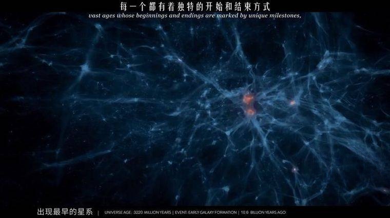 尽管时间高度压缩,短片仍精准捕捉了宇宙演化的 “关键里程碑”,每个节点都以 “科学证据 + 视觉模拟” 的方式呈现,既保证严谨性,又兼具观赏性: