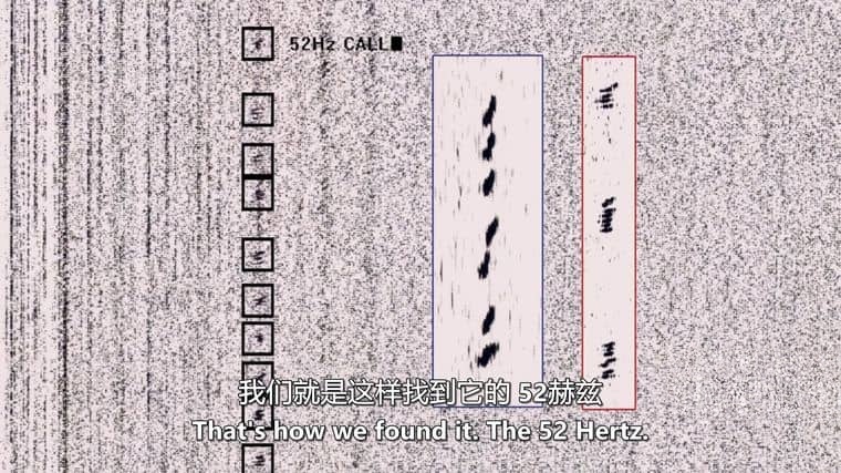 纪录片首先回溯了“52赫兹鲸”的发现史:1992年,美国海军水下监听设备首次捕捉到这个异常频率,随后伍兹霍尔海洋研究所的威廉·瓦特金斯博士团队对其追踪20年,发现它的声音每年都在轻微下降(从52赫兹降至49赫兹),且移动范围覆盖北太平洋数千公里——这引发第一个质疑:如果它真的“孤独”,为何能存活这么久?