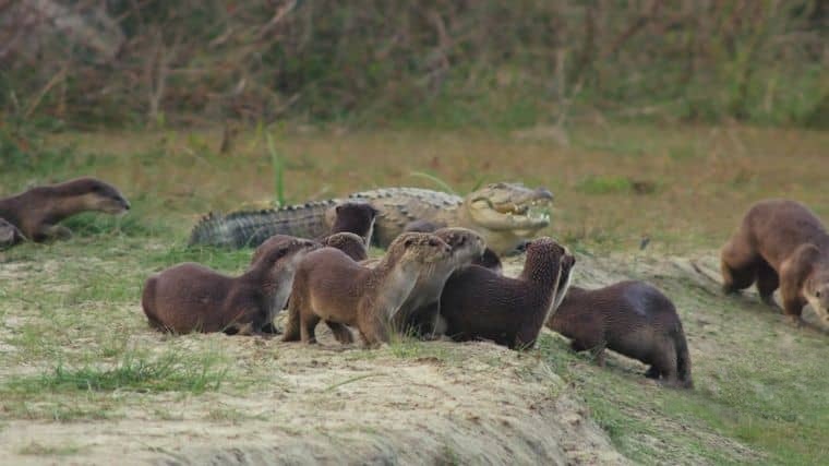 第四集转向南美洲亚马逊雨林的美洲豹,展现其“全能生存技能”:它是唯一能咬碎龟壳和鳄鱼皮的猫科动物(咬合力达1500 PSI),也是唯一“习惯性爬树”的大型猫科动物(在巴西潘塔纳尔,美洲豹常将猎物拖到树上躲避鬣狗)。影片记录了雄性美洲豹“独行者”的领地巡视——它沿着河流标记气味,与雌性短暂交配后便独自离开,幼崽由雌性抚养至2岁。但非法盗猎和森林砍伐导致其数量锐减:过去50年,美洲豹的栖息地丧失了50%,在阿根廷、乌拉圭等地已区域性灭绝。护林员在片中展示了用GPS项圈追踪到的“悲剧案例”:一只雄性美洲豹因穿越公路被汽车撞死,其领地已被大豆种植园分割成碎片。